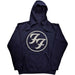 An official licensed Foo Fighters Unisex Pullover Hoodie featuring the 'FF Logo' design motif. This high quality Pullover Hoodie is available in a navy blue colourway.
