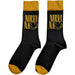 An official licensed Nirvana Unisex Ankle Socks featuring the 'Logo Stacked' design motif. This high quality Ankle Socks is available in a black colourway.