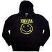 Official licensed Nirvana Unisex Pullover Hoodie featuring the 'Yellow Happy Face' design motif. High quality Pullover Hoodie available in a black colourway.